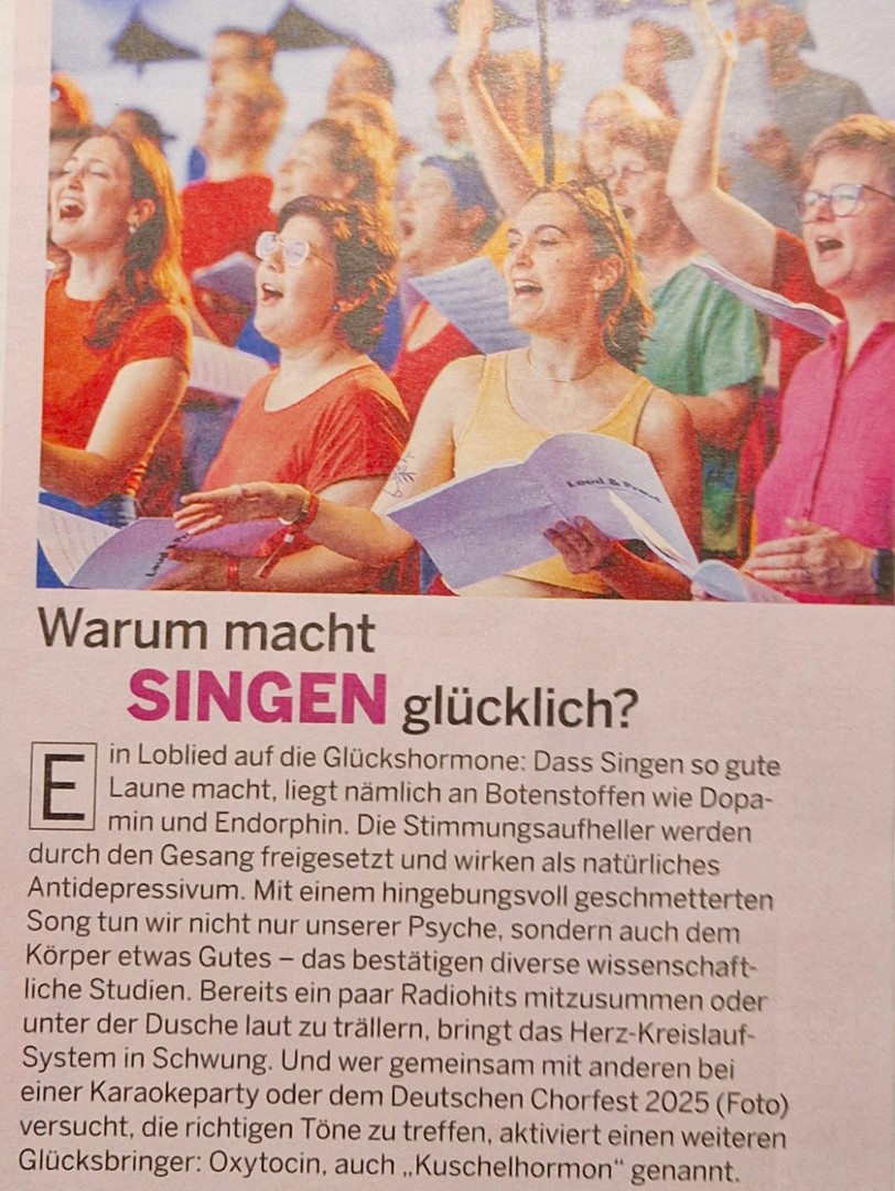 Singen in der Gruppe stärkt das Immunsystem haben Wissenschaftler herausgefunden und die Herzen beginnen im gleichen Takt zu schlagen. Singen gibt Energie und schenkt Lebensfreude.